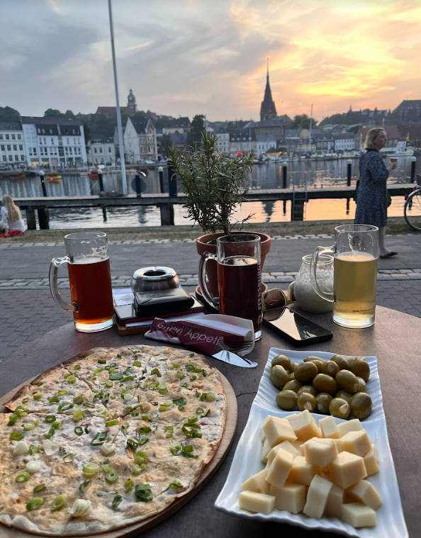 Flensburg – Hafenküche (dinner), Feuerstein (beer + food with outdoor seating), Cafe K (food, breakfast, ice cream), Migge’s Danish Bakery (bakery), Flensburg Beach Club (beer/light dinner), Doner